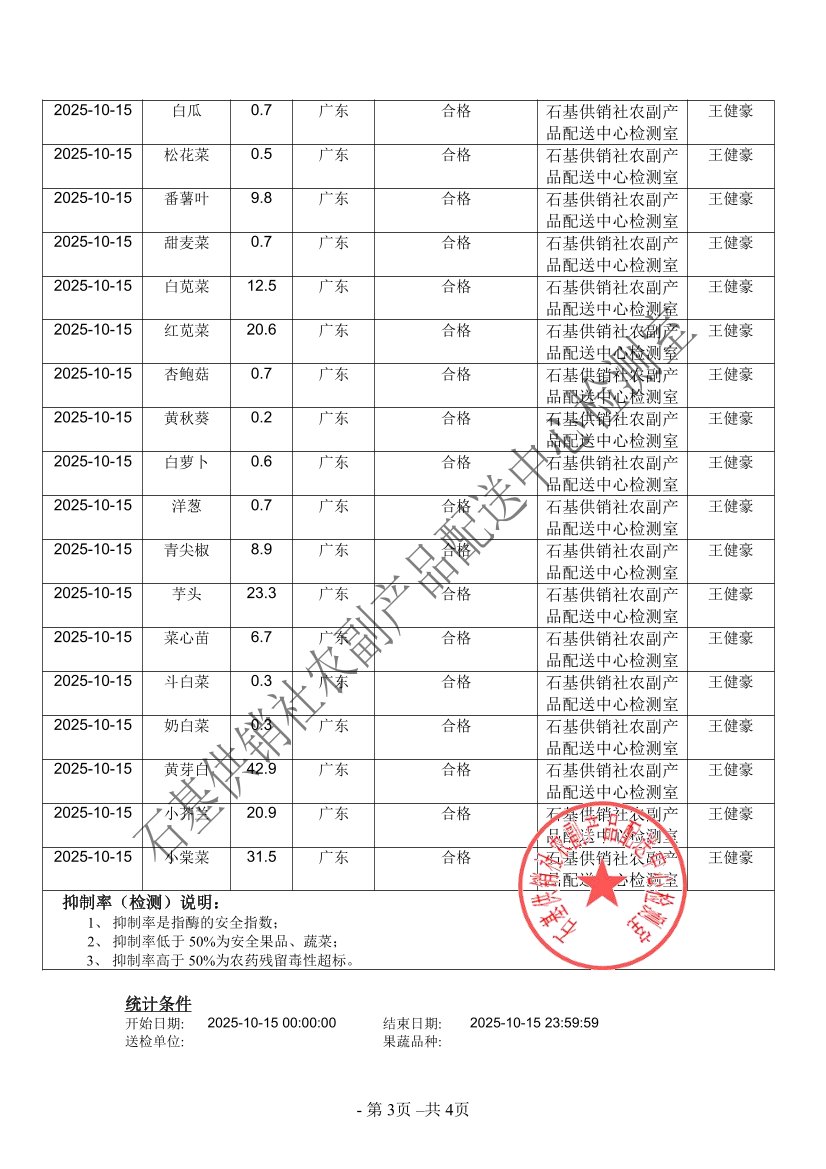2025年10月15日蔬菜农药残留检测