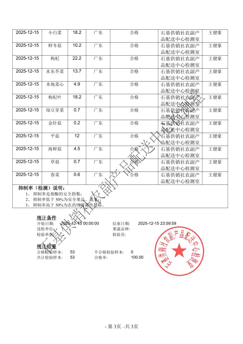 2025年12月15日蔬菜农药残留检测