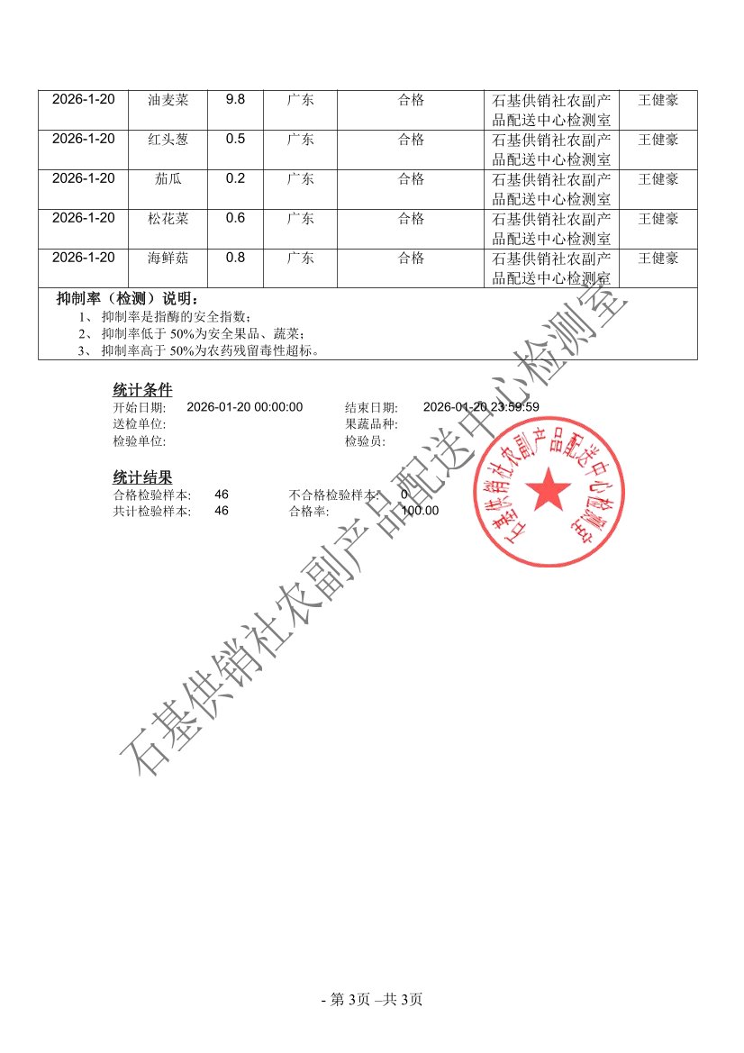 2026年01月20日蔬菜农药残留检测