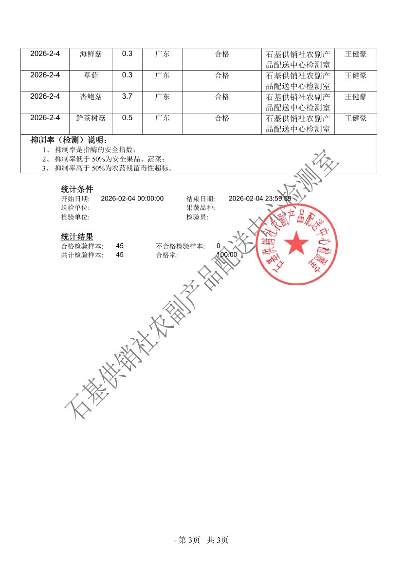 2026年02月04日蔬菜农药残留检测