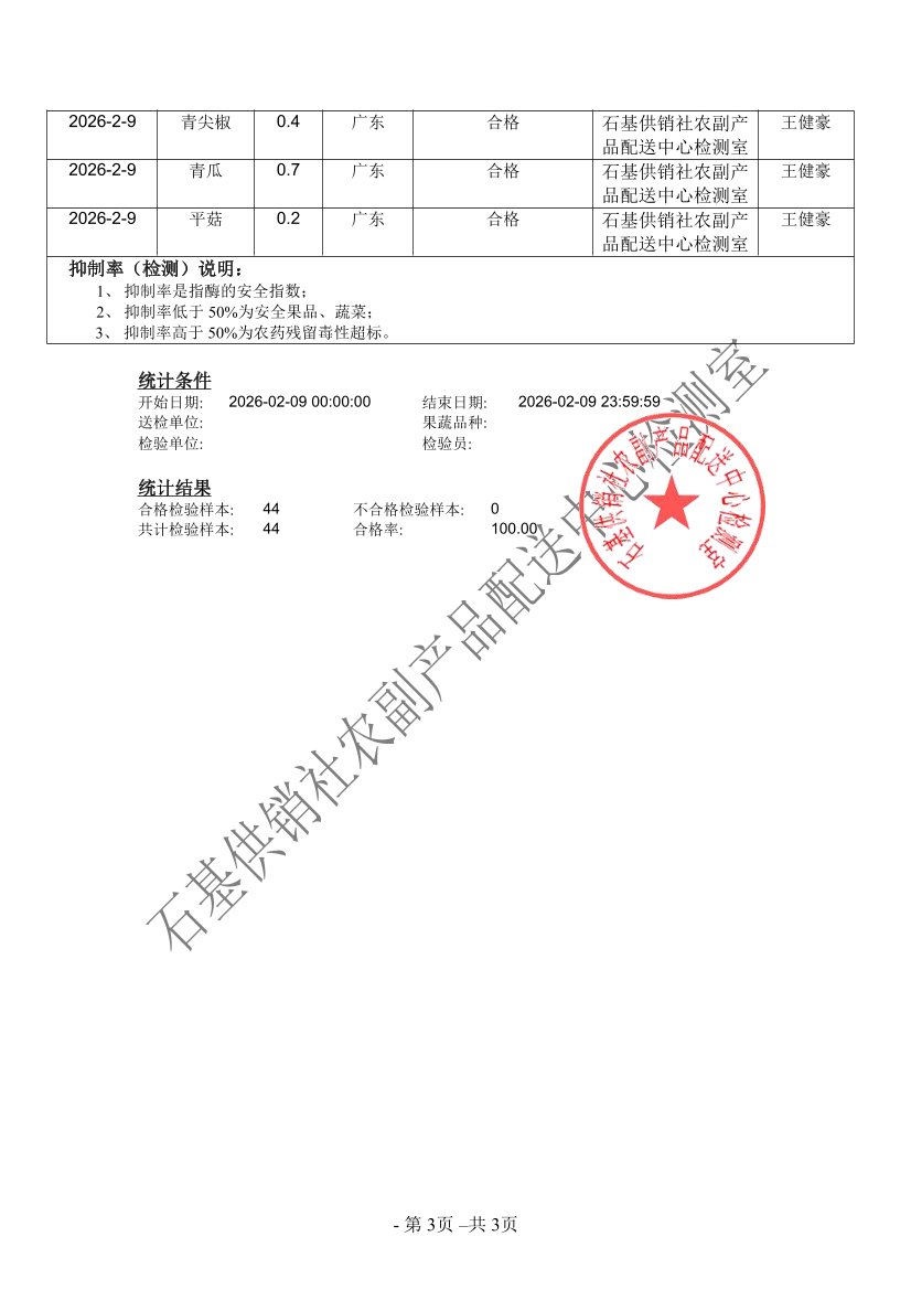 2026年02月09日蔬菜农药残留检测