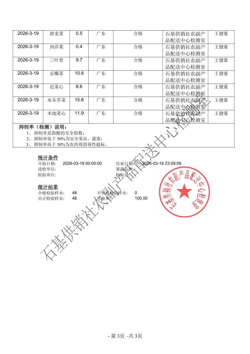 2026年03月19日蔬菜农药残留检测