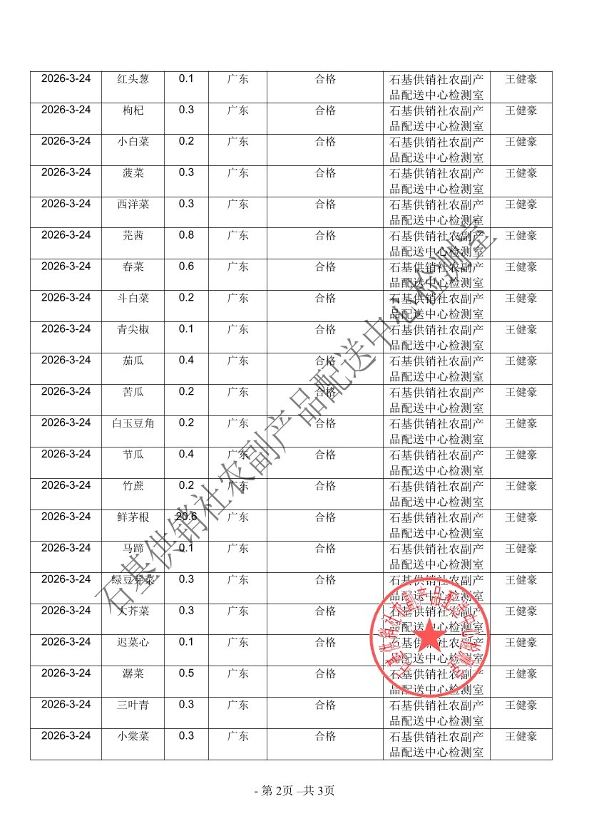 2026年03月24日蔬菜农药残留检测
