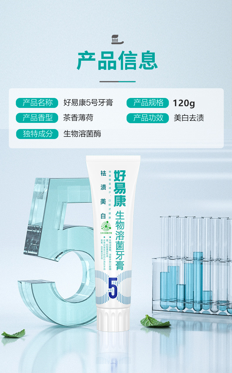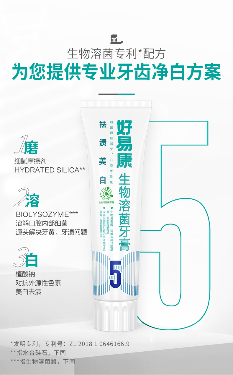 • 好易康5号健白清新牙膏120g(390502)